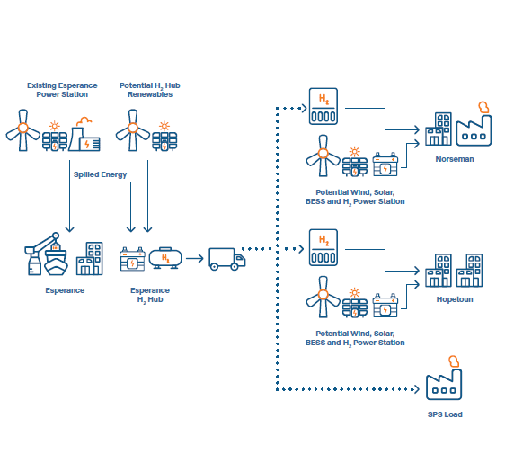 • the viability of small-scale hydrogen production at an Esperance-based hub, using spill energy, new and existing assets;